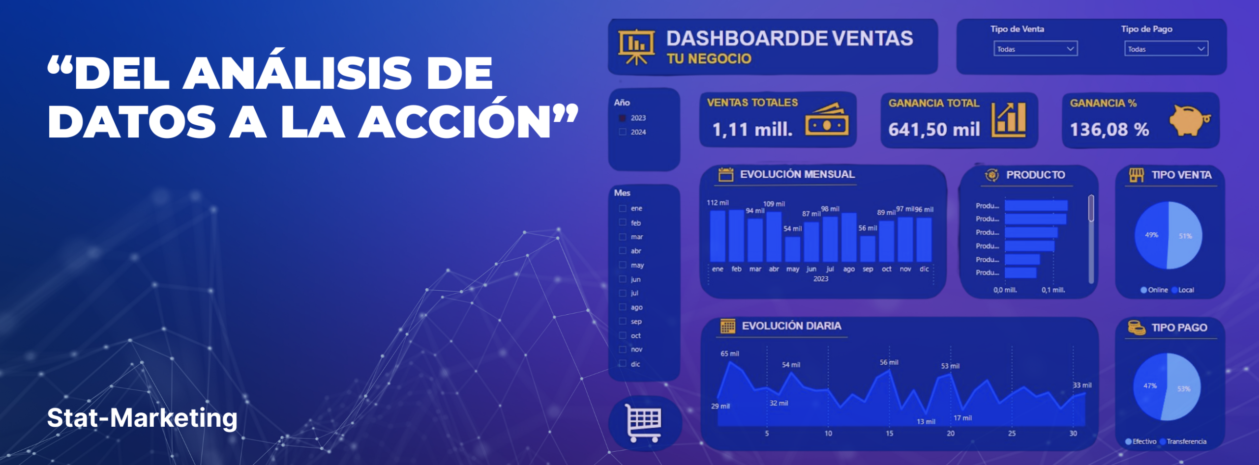 Inteligencia de Negocios con Power BI Diseñamos e implementamos tableros ejecutivos, modelos de datos robustos y medidas DAX avanzadas. Creamos visualizaciones personalizadas que combinan componentes nativos con HTML para una experiencia superior. Contamos con más de 50 proyectos exitosos en México, Centroamérica y el Caribe.